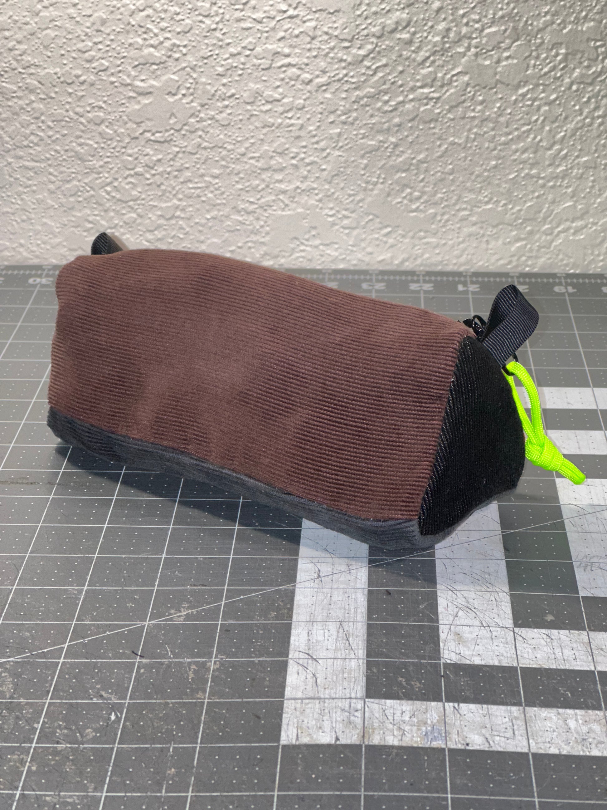 Mixed colors/textures of corduroy gives each piece a unique feel while allowing the materials to have a second life as something new and useful.
