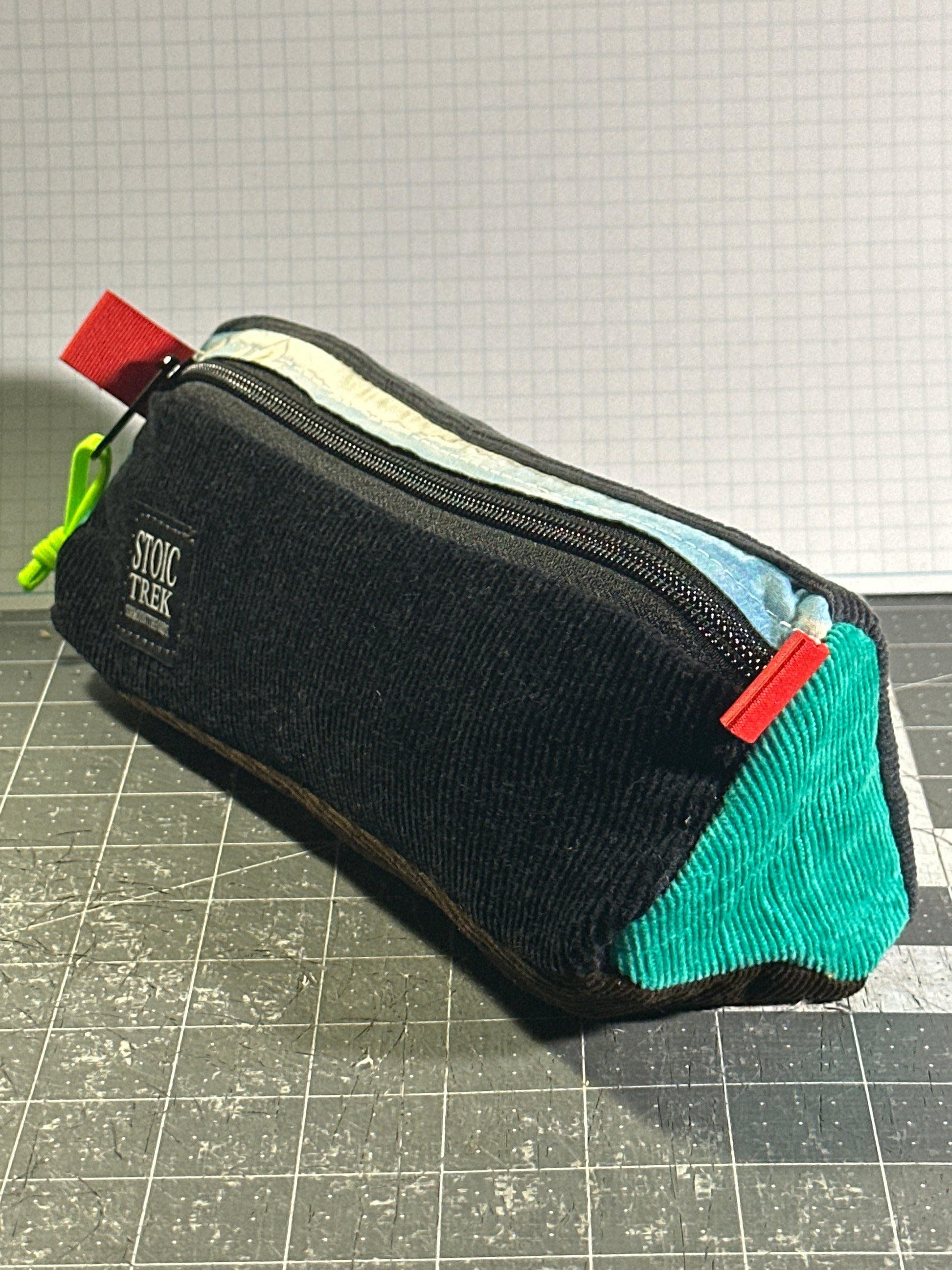 Mixed color/texture of corduroy along with aloha shirt print on zipper allows for a one-of-a-kind feel, as well as allows us to give the materials a second chance as something new and useful.