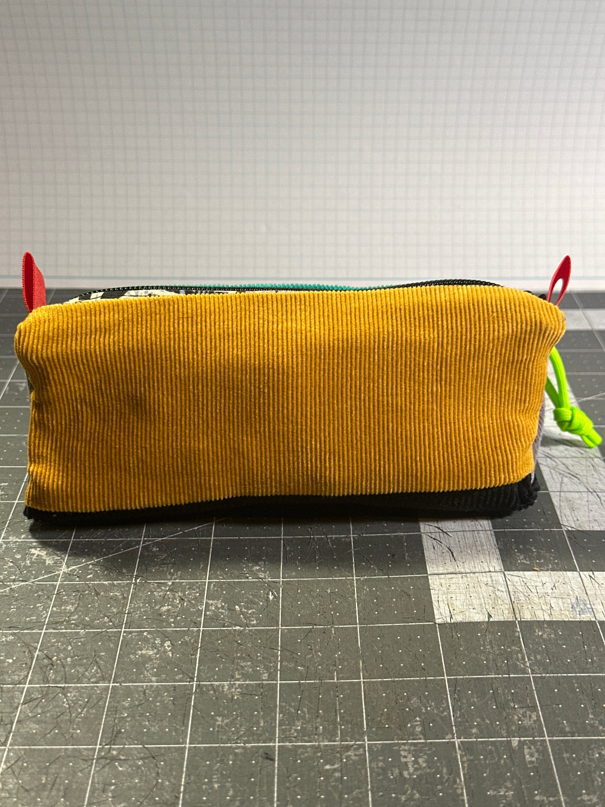 Mixed colors/textures of corduroy and aloha shirt print give each piece a unique feel while allowing the materials a second life as something new and useful.